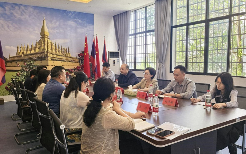 9月28日下午,湖南省对外友好协会专职副会长王丽文率代表团一行五人莅临我校考察调研,重点围绕我校老挝研究院的建设与发展进行深入交流。校党委委员、副校长唐杰,国际学院(与国际交流处合署)全体班子成员出席座谈会。会议由处长、院长刘丽华主持。