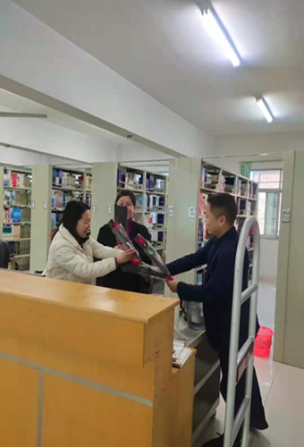 为庆祝国际第111个“三八”国际劳动妇女节,让广大女职工感受到学校对其的关怀与爱护,2022年3月8日上午,图书馆分工会主席谭亮带领部分分工会委员将学校工会精心准备的玫瑰花和慰问信送到了每一位女职工手里。