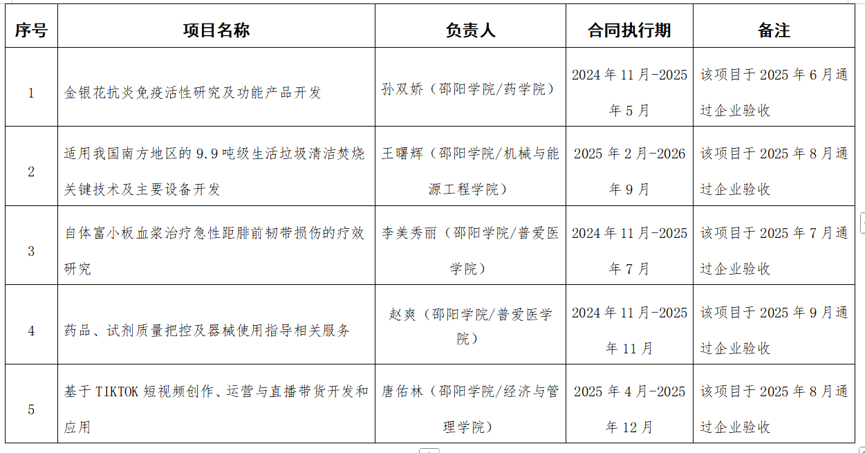 关于2025年度邵阳学院横向科研项目备案推荐的公示