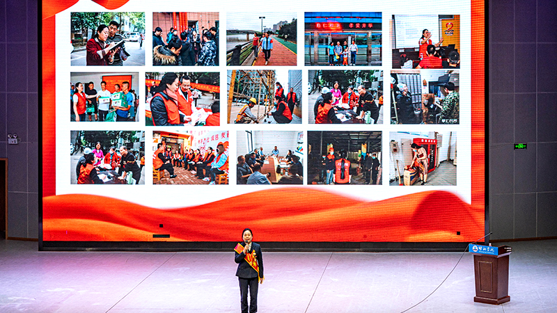 宣讲伊始,刘朝辉深情回顾了自己从1993年投身社区工作的奋斗历程。那一年,她来到长沙市人民东路居委会,面对一片空白的城乡结合部社区,她没有退缩,而是带领团队在一间仅有8平方米的小屋中开启了艰难的探索之路。面对复杂的社情和民情,她坚持以党建为引领,创新“党建+劳模+N”模式,推动社区服务项目化、精细化。从职业介绍所到托儿所,从医疗服务站到老年活动中心,一个个贴近居民需求的服务项目在她的带领下落地生根,为社区居民撑起了全方位的关怀与支持。