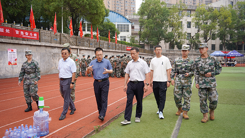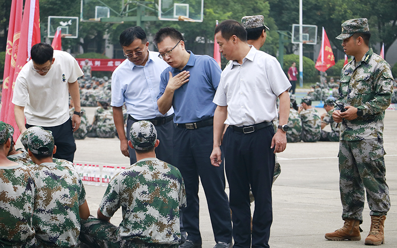 9月19日上午,校党委委员、副校长黄秋生在学生工作部、武装部部长蒋德意、副部长宋传颖陪同下,分别来到七里坪和李子园两校区的训练场,代表学校走访慰问2025级全体参训新生和教官。