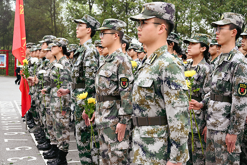 2025级音乐舞蹈学院学生徐雯曼站在队列前方,声音清亮而坚定:“作为新时代青年,我们是国家的未来。缅怀先烈最好的方式,就是把他们的遗志化作脚下的路。”她的话音刚落,2024级农林生态学院学生周佳兴接着说道:“先烈们用生命换来了今天的山河无恙,我们要在训练场上不怕苦、在学业中不松劲,把爱国情融入每一天的坚持。”