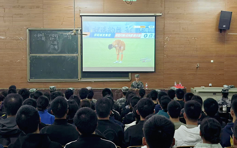 仪式环节庄重有序,旗帜交接象征责任与精神的传承。随后,大会创新设置集体观看“湘超”联赛环节。当直播画面切入邵阳队主场,现场气氛迅速升温。学员们为精彩配合欢呼,为奋力拼搏动容,集体荣誉感与团队凝聚力在观赛中悄然凝聚。新学员表示,比赛中的团结与坚持令人深受触动,将把这份激情转化为服务同学、建设校园的动力。