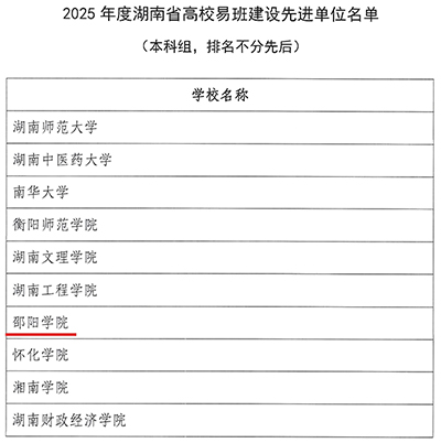 近日,湖南省高校易班发展中心发布《关于公布2025年度湖南省高校易班评优结果的通知》,我校再度摘得“2025年度湖南省高校易班建设先进单位”称号,这是我校自2018年开展易班建设以来,第七次获此项殊荣。同时,我校申报的优秀易班迎新案例、优秀易班辅导员、优秀易班工作站站长三个项目,经省级评审推荐,拟参与教育部易班发展中心2025年度全国易班共建高校优秀工作案例的遴选与展示。