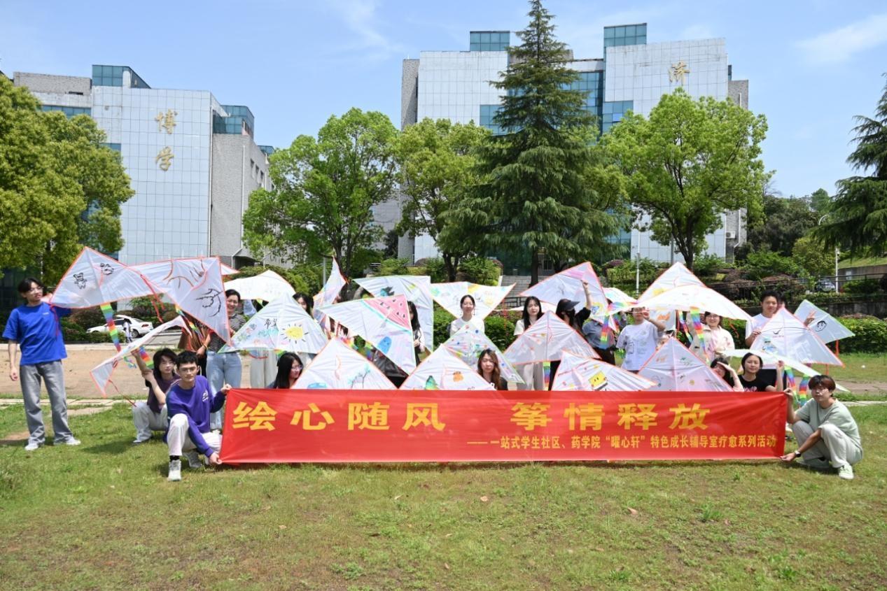 为提升大学生心理调适能力和主观幸福感,药学院“曜心轩”特色成长辅导室联合一站式学生社区于2025年4月17日在济世社区田径场举办“绘心随风,筝情释放”大型艺术疗愈户外特色活动。活动以风筝为媒介,通过自我创造与集体放飞,释放压力、表达情绪、探索自我、引导学生走出宿舍投身户外,感受自然与艺术的疗愈力量。