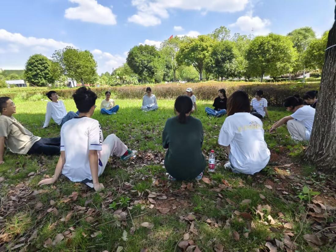 “森林漫步与正念呼吸”是本次活动的核心环节。同学们沿着指定路线缓慢行走,负责人全程引导大家专注于脚下的每一步,感受每一个脚印每一处泥土,感受身体与自然的连接,将注意力从繁杂思绪转移到当下的感受中。途中设置多个“疗愈驻足点”,同学们可在树荫下静坐,与树对话,感受大自然的魅力。活动尾声,同学们围坐成圈,闭上眼睛,打开耳朵,进行简短的自然冥想,安放身心。