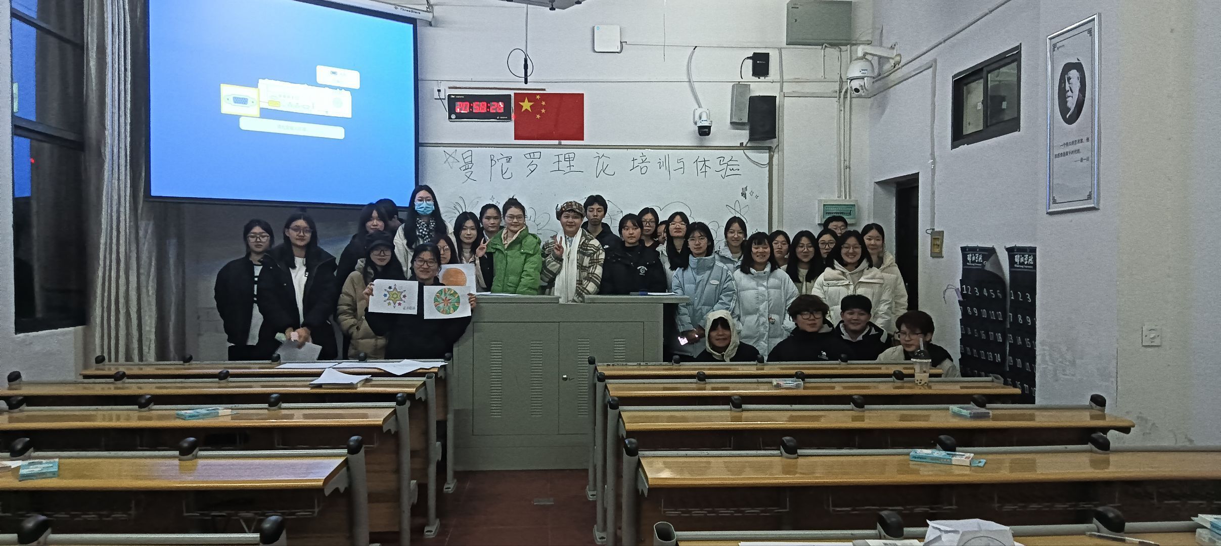 2026年1月4日晚19:00,“曼陀罗理论培训与体验”团体辅导培训在李子园校区二栋教学楼214顺利开展,本次活动由22级小助教张晋源担任领导者。