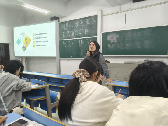 2026年3月30日19:00,我校心理中心面向七里坪校区四大朋辈心理互助队伍——校心理健康服务部、朋辈心理小助教、心海编辑部、心理健康协会开展以“朋辈心理互助队伍的角色定位与工作协同”为主题的培训。此次培训由心理中心专职教师汪瑶老师主讲。