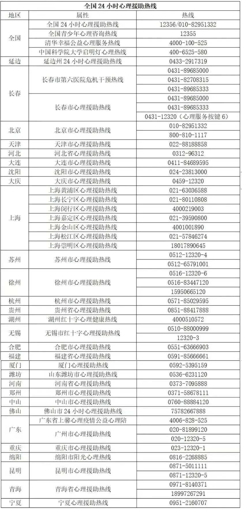 如遇特殊情况或紧急情况,还可以拨打全国24小时心理热线: