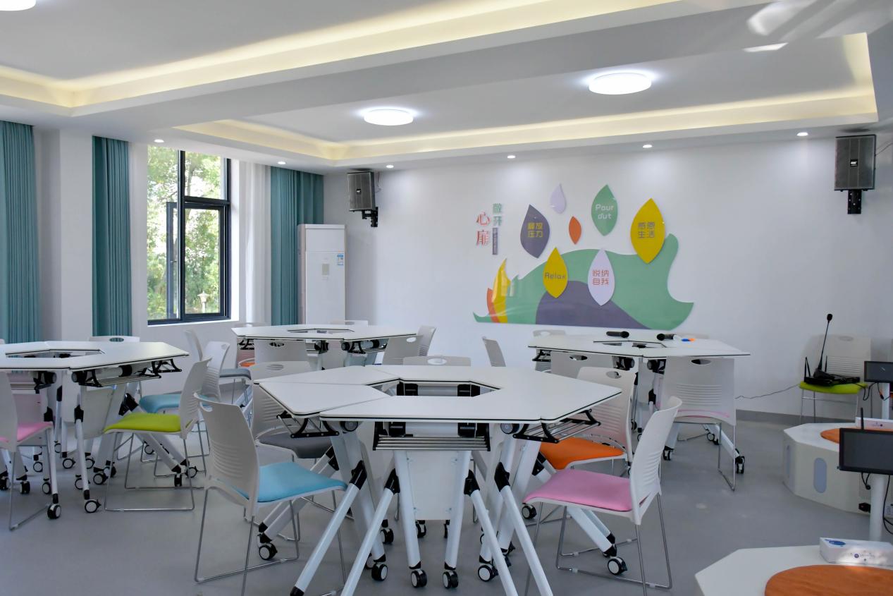 新心理中心以“空间疗愈心灵”为设计理念,打造了1080㎡的主体空间与600㎡的户外拓展区。微风、阳光、树影、书香……在这里,你可以暂时卸下压力,寻一处角落,捧一本书,享受独属于自己的宁静时光。
