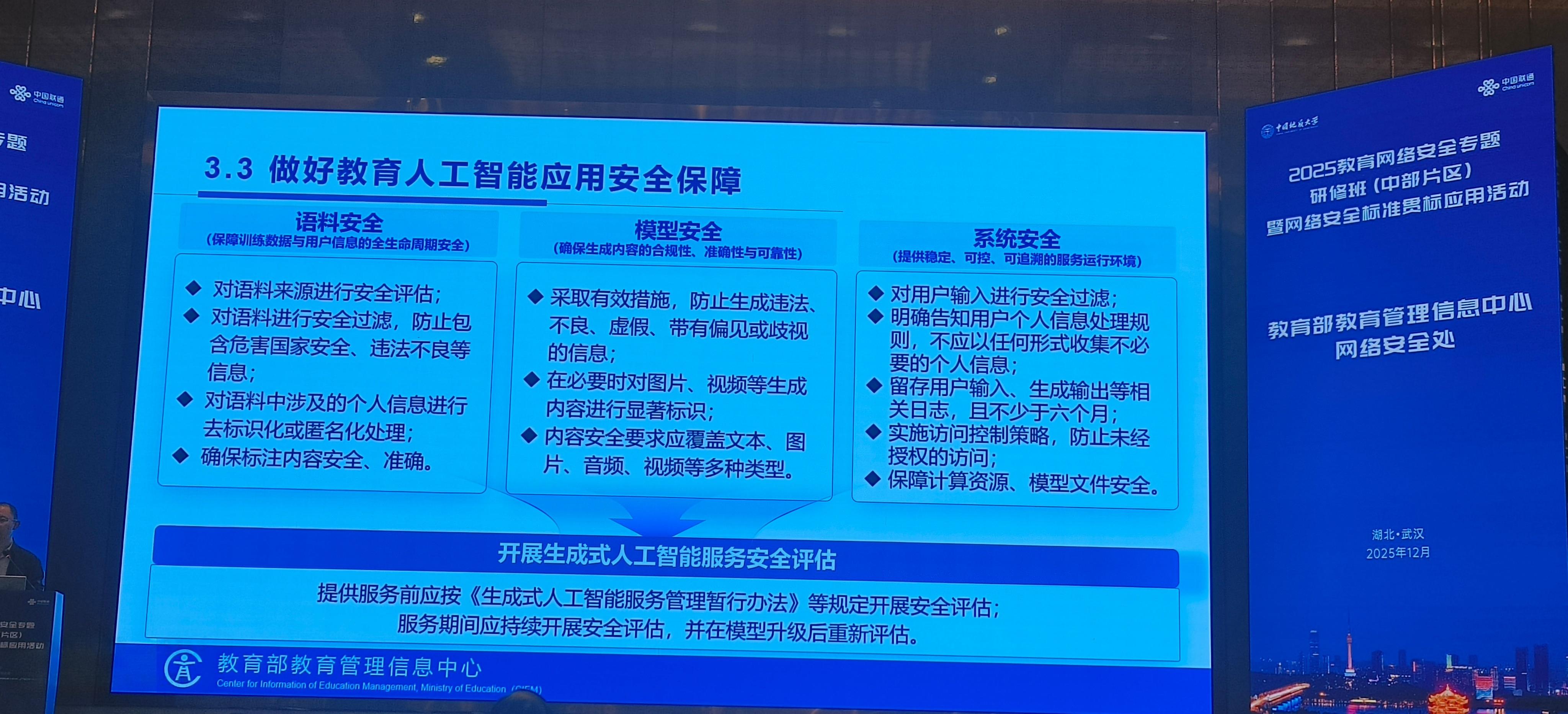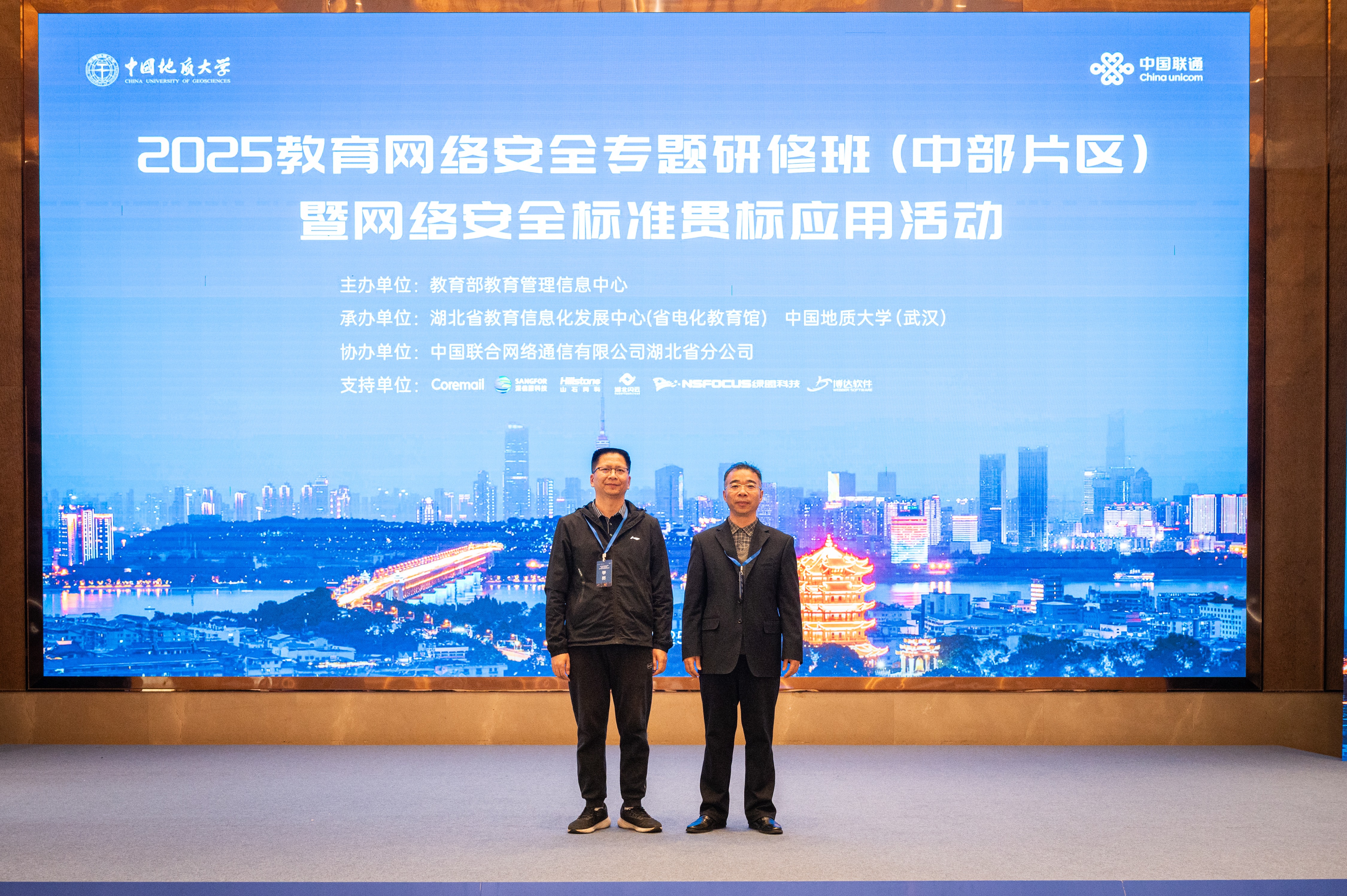 12月4日,信息与网络中心主任夏冬晴、副主任雷军程在武汉参加2025教育网络安全专题研修班(中部片区)暨网络安全标准贯标应用活动。