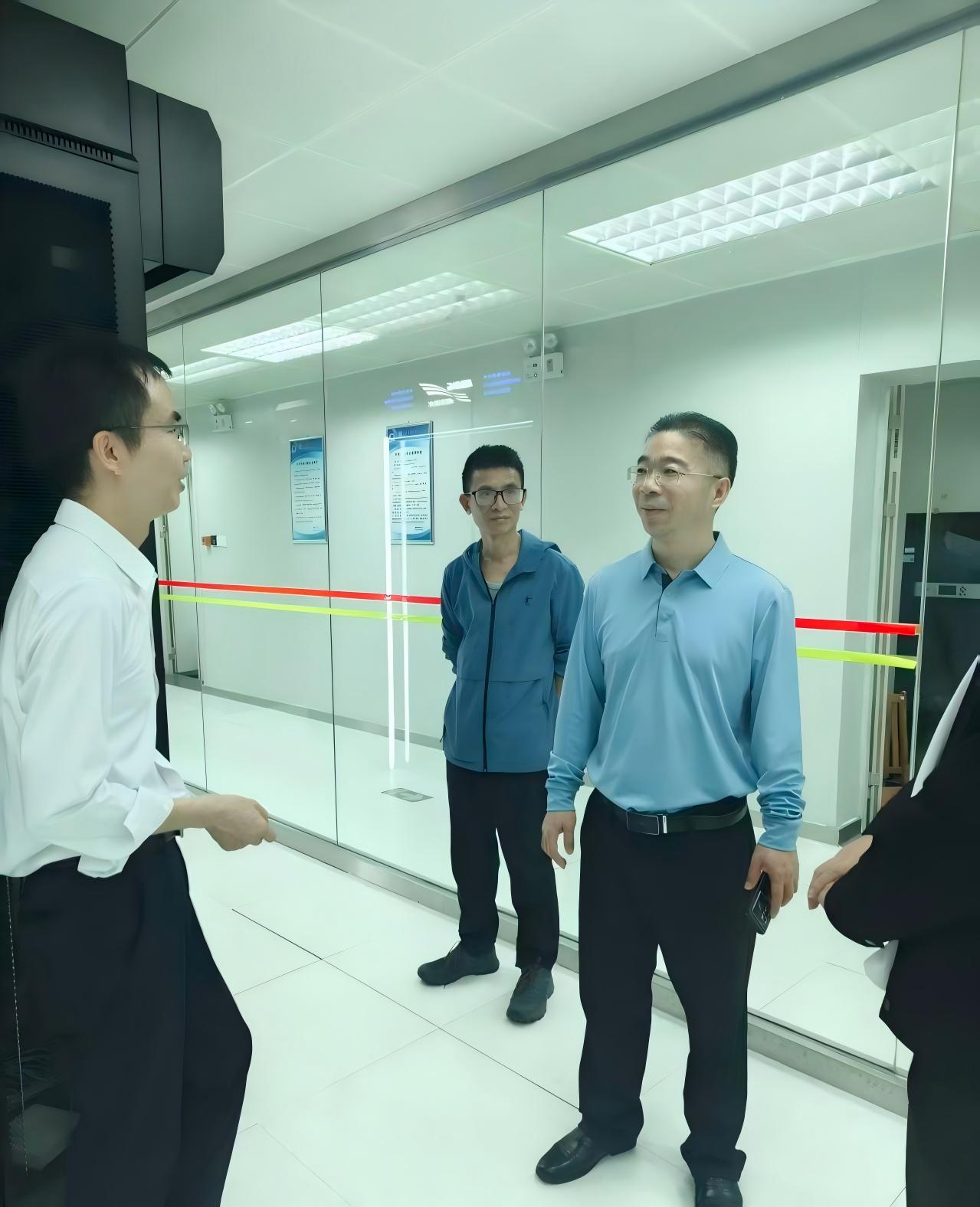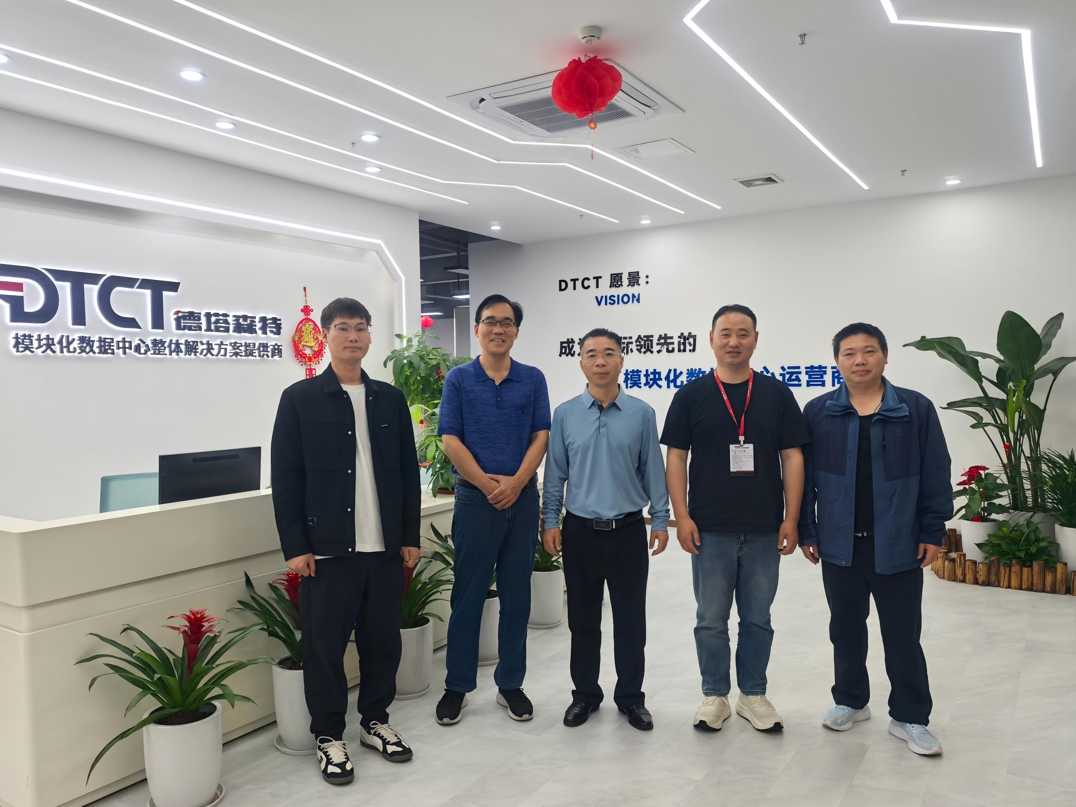 夏冬晴一行首站来到德塔智维(广东)数据科技有限责任公司,总经理谭晓勇、副总经理钟鸿鹄热情接待。首先参观该公司的成果展览厅和研发实验室,随后双方围绕AI新技术、数据中心模块化、大数据运维管理、信创适配服务等内容深入交流探讨。