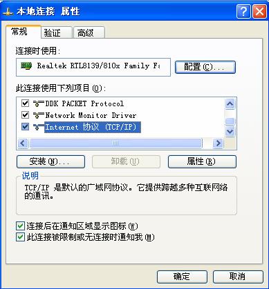 2、选中Internet协议(TCP/IP),点属性按钮。