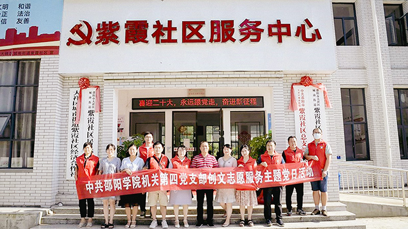 为扎实推进党史学习教育、宣讲进社区,8月15日,校机关第四支部赴邵阳市大祥区紫霞社区开展“宣讲进社区”创文志愿服务主题党日活动,并就文明城市创建工作进行了交流探讨。活动中,支部邀请马克思主义学院李洁老师围绕学习《习近平谈治国理政》(第四卷)做专题宣讲。