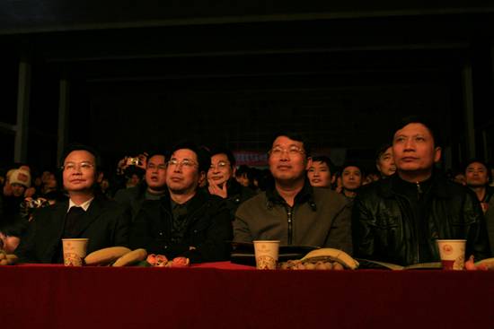 晚会部分嘉宾,从左至右依次为院长曹健华、副院长曾宝成、院党委副书记陈晓飞、副院长曾阳素
