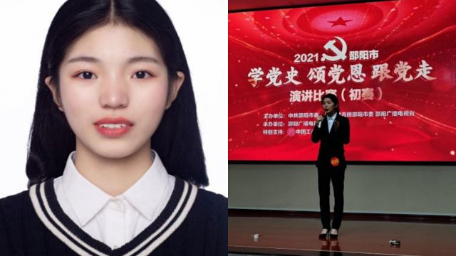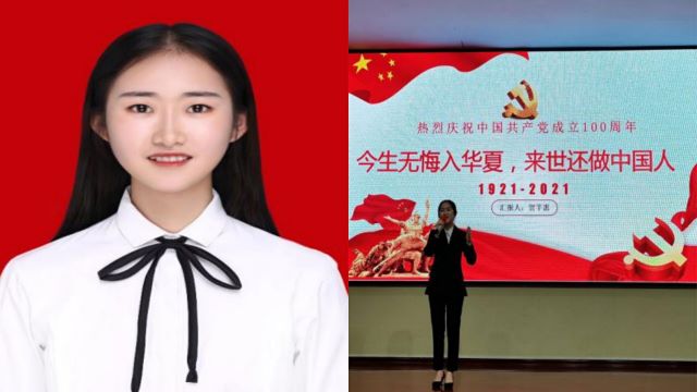 参赛宣言:“我是一个阳光向上的女孩,一直以来我都向往着神圣的中国共产党,并且一直在朝着加入共产党这个目标努力。我相信最后的结果一定会是我期待的,如果还没有,那么一定是还没有走到最后。期待舞台上那个神采奕奕的自己!”