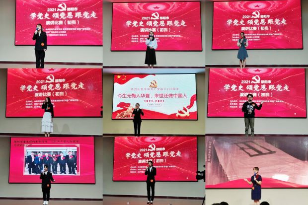 为庆祝建党100周年,共同见证、记录中国共产党给中华民族带来的沧桑巨变,重温党的历程,歌颂党的成就,4月24日,由中共邵阳市委宣传部、共青团邵阳市委、邵阳广播电视台主办的“学党史 颂党恩 跟党走”演讲比赛初赛于邵阳职业技术学院拉开序幕。其中,我校团委通过口才与社交协会、演讲协会内部选拔,共推荐11名学生参赛。据悉,本次比赛共有全市81个市县单位共187名选手参与。