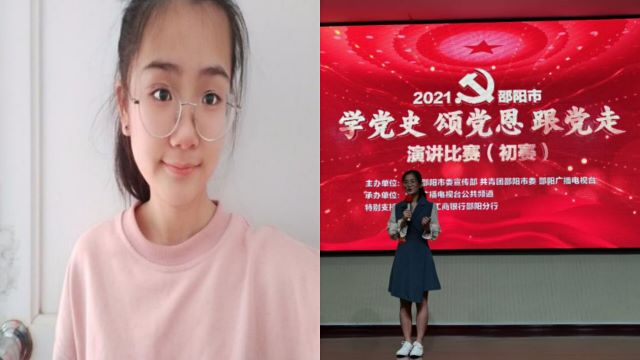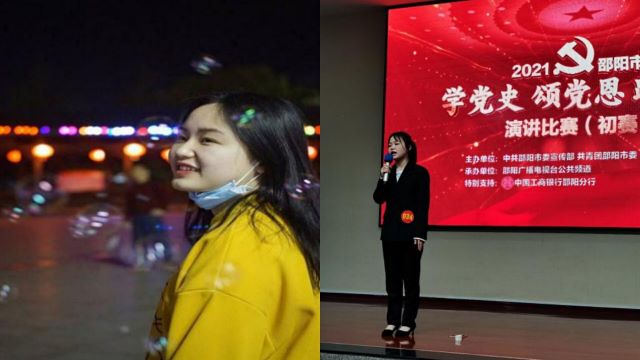 参赛宣言:“机会总会留给有准备的人,有备而来的我会努力把微笑洒向四方,用语言温暖身边每一个人,希望我的到来能成为大家的独家记忆!今年是建党一百周年,在这个特殊日子里,我虽是一名平凡的爱国青年,也要为这极不平凡而讴歌颂唱。今天,我将说给你们听!”