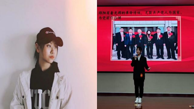 参赛宣言:“作为一名大学生,我始终牢记着党的教诲,沐浴着党的恩泽,在我的心里,中国共产党仿佛是一盏灯,是我的信仰,鼓舞着我不断向前。我是法学专业,接触法律后,感受到法律的纯洁与神圣。我希望成为一名优秀的党员律师,维护社会公平正义!”